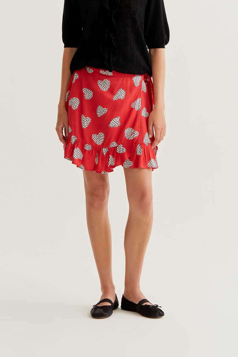 Falda corta con estampado Harmony Red de Compañía Fantástica. Diseño versátil y cómodo, ideal para looks diarios con un toque de color.