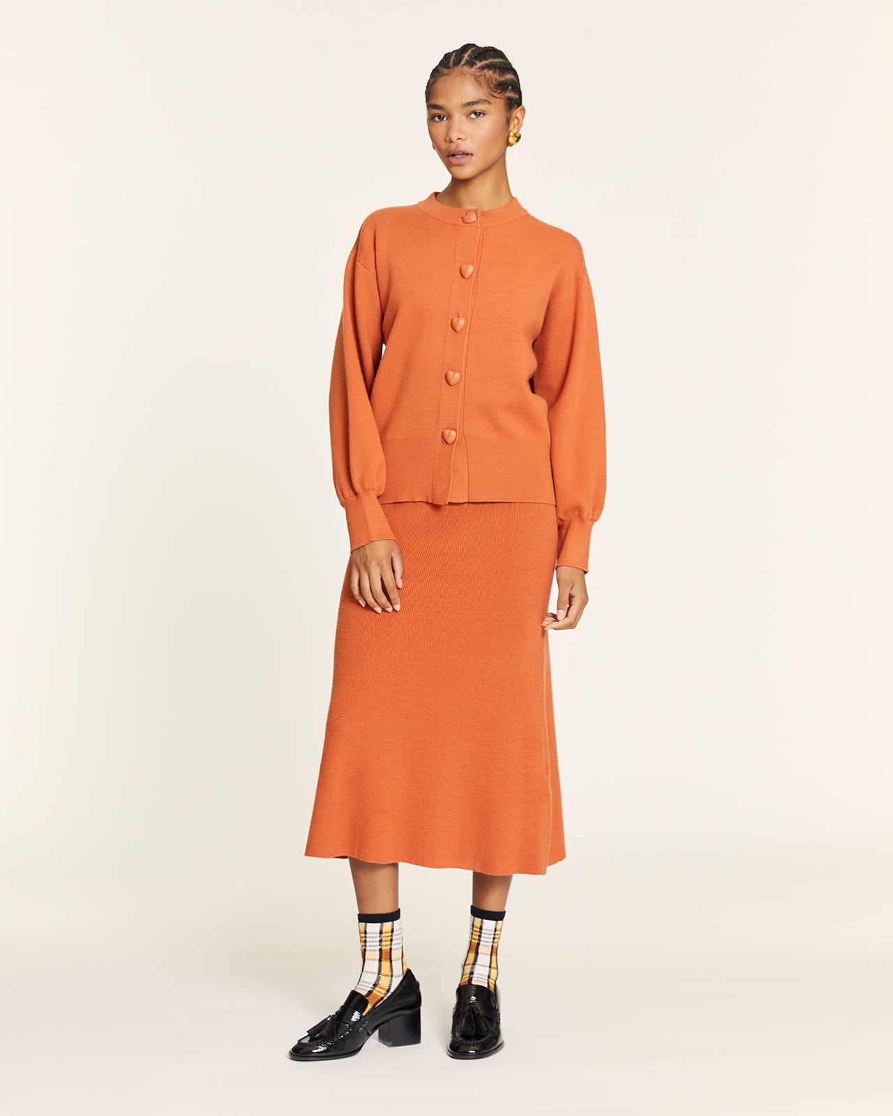 La Falda de Punto Toffe es ideal para llevar con jerséis y blusas, o para lucir en conjunto con la Rebeca con Botones de Corazón Toffe, logrando un look coordinado y lleno de personalidad.
