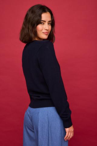 Un imprescindible de armario. El Jersey Cenicienta Marino combina con todo: desde faldas estampadas hasta vaqueros clásicos.