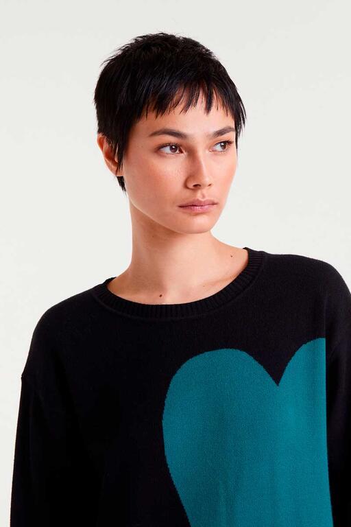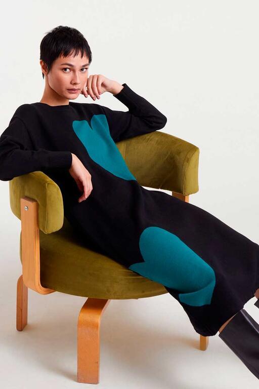 Vestido de punto midi jaquard Compañía Fantástica con estampado Super Green Heart